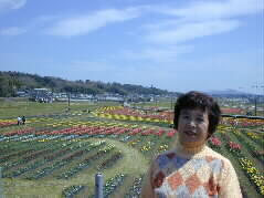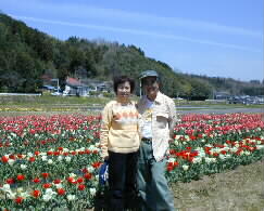 |  | いつまで見ていても飽きない美しいチューリップです。 記念写真を写してもらいました。 |