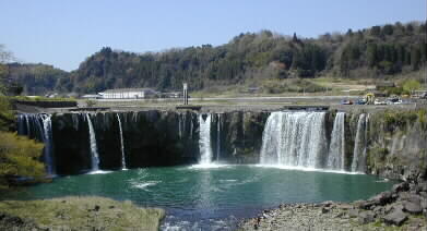 |  ここは有名な「原尻の滝」のすぐ側です。「東洋のナイアガラ」とも言われる 滝です。阿蘇山の溶岩が作った不思議な景色。日本の滝百選にも入っています。 | |