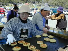 |  | 見ていてあんまりおいしそうで思わず買ってしまった「やき餅」中にはおいしいサツマ芋餡がたっぷり入っています。 |