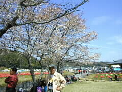 |  | さあ、とうとう原尻の滝にやってきました。入り口には「今日のチューリップ八分咲き」と書いてあります。ウイークディということで中まで車を入れることが出来ました。 4月7日から20日までチューリップフェスタ2001が開かれます。今年のテーマは「華の波」だそうです。 |