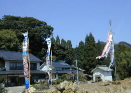 | もう青空に鯉幟が泳いでいます。 |  |