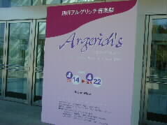 | 会場入り口に置かれた大きな看板です、今年のイメージカラーで作られています。 中へ入るとアルゲリッチさんの写真が出ていました。 | |