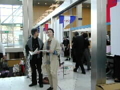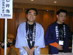 |  | 今日の演奏会は、クラシック、タンゴ、ジャズ、とマルタ・アルゲリッチらしいラテン系の盛りだくさんのプログラムでマラソンコンサートと銘打たれています。 1時間の休憩時間が組まれていて、その間ロビーではお弁当が売られています。 友人の安部さん(左)がお弁当売り場の担当でした。 |
