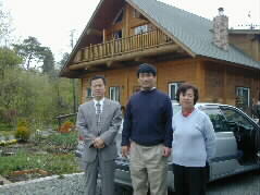 | まず最初は、私の友人のログハウス訪問です。ようやく新芽を吹き出した木々に囲まれたログハウスに安さんも宮瀬さんも感動して下さっていました。部屋の中を見学させて頂いて、ゲストブックにサインをしました。 左の写真は、今日のドライブメンバー左から安さん、宮瀬さん、Mie 右の写真は室内で山田さんと一緒に。 | |