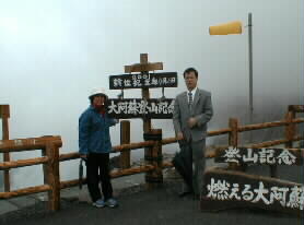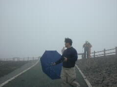 |  | たちまちガスの立ち込める阿蘇山上です。避難用の頑丈な壕の前で安さんも寒そうです。 |