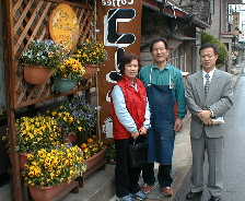 |  | また、店の隅にはパソコンが置いてあり、マスターの佐藤さんが「ちょっと教えてくれますか?」というと、宮瀬さん、安さんが覗き込みます。 二人ともパソコンの達人、強力な助っ人です。早くインターネットが出来るようになりドイツに居る息子さんとメール交換がしたいそうです。 |