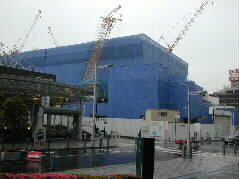 | 青いシートで囲った建築現場があります。ここが新しい総理大臣官邸の建築現場です。左は「溜池山王駅」です。 この写真は私たちの泊まったホテルの前から写しています。 |