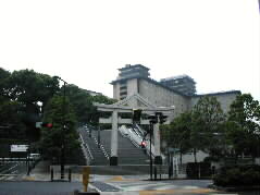 | 今度は赤坂側へ行ってみました。道路からすっくと日枝神社の鳥居が立っています。日枝神社への石段の横にはエスカレーターも着いています。右に見えるのがキャピタル東急ホテルです。 | |