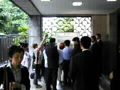 | 今日はまず、国会議事堂の見学をすることにしました。議事堂の通用門のところで人が一杯いました。記者会見のようです、テレビでよく見る光景です。こうして日本の政治が語られていくのかと思いながら見ました。 | ![]() |