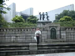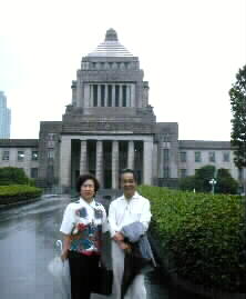 議事堂正面で記念写真を写して見学を終りました。私は高校の卒業旅行で見学をして以来のことでした。 |