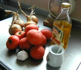 |  | 昨日、友人が真っ赤に熟れたトマトをたくさんたくさん持って来てくれました。そのまま食べるだけでは勿体無いので、今日はトマトソースを作りました。 材料は完熟トマト1.5キロ、玉ねぎ4個、ニンニク1株、オリーブオイル1カップ、塩大さじ1、です。 |