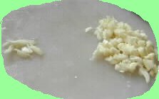| ニンニクは包丁の背でつぶして芯を取り出し、3―4個に荒く刻みます。 |  |