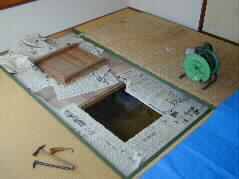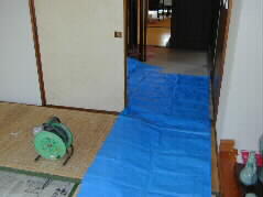 | 玄関から床下の入り口の穴のある和室までビニールシートを敷き詰めました。 |  |