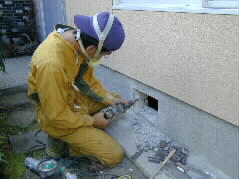 | 蒸し暑い日に外で、また床下での工事は本当に大変です。 |  |