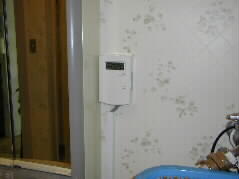 | 換気扇は、タイマーで午前10時から午後3時まで作動します。そのための電源と操作盤を洗面台の横に取り付けました。さあ、これで我が家の床下もさっぱりとすることでしょう。設置工事大変お疲れ様でした。 | |