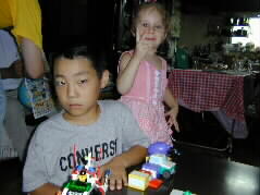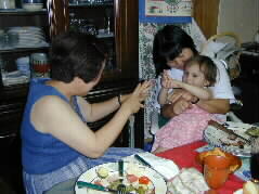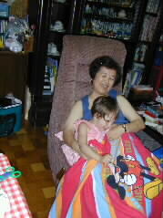| 今日は大勢のお客様で準備に忙しくして下さったとも子さんです。 お年は幾つですか?3才、と日本生まれの日本語の上手なカミーラちゃんです。 |  |