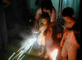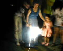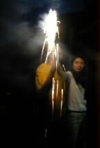 |  | たくさんご馳走を頂いた後は、お庭で花火をしました。 |