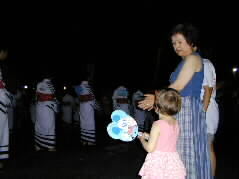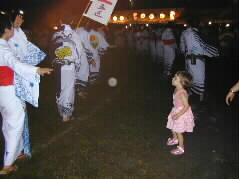 | 盆踊りは初めてというカミーラちゃんは、とっても興味があります。 |  |