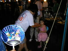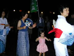 |  今夜は富士見が丘団地祭り、うちわを手に盆踊りを見に行きました。 | |