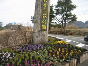 |  | 3月20日に再開した「くじゅう花公園」の入り口ですが、お花がまだ子どもですね。 |