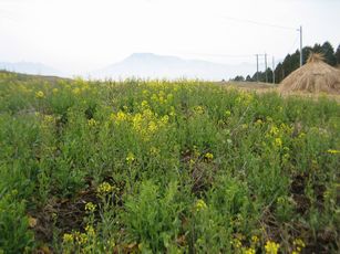 |  | 阿蘇盆地の入り口には菜の花が満開、とっても美しくて帰路もここを走ってまた菜の花を見ようと思いました。 |