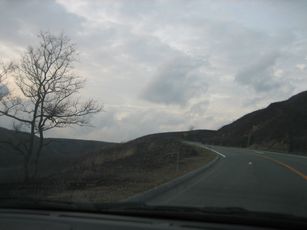 | 帰路5時半頃のやまなみハイウエイです。しばらくすると、緑に燃え立つ高原は今は山焼きの後で真っ黒です。 またこれから時々、この道を走ることになりそうです。 |  |