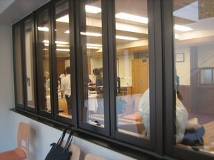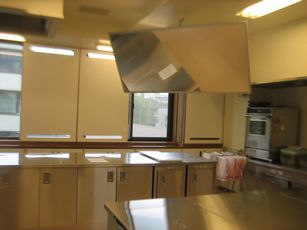 interior paint was still half-dried. This is the cooking room. A huge mirror is set up so as students can see the detail well in the cooking course. |