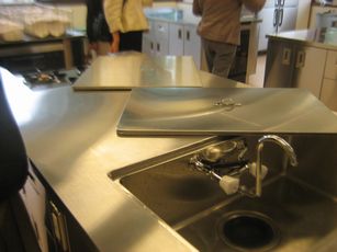 | The kitchen table lid covers the sink and gas table. | ![]() |