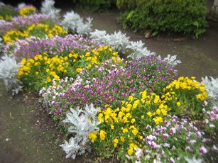 We had a storm last night but it was cleared up before the noon. The flower bed was shining in the morning sunlight. |