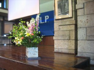 The second day of the conference was held at the main hall of Japan Youth Building. Some 1,200 members joined the conference. On the stage was a beautiful lily pod. My seat was the front row. I was wrapped with the fragrance of the lily. |