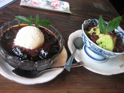 | 私は、コーヒークリームぜんざい、友達は小豆抹茶クリームをオーダー、自然な冷たさがおいしかったです。 たくさんおしゃべりをしました。 とっても落ち着くひと時でした。 |  |