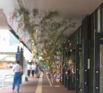 |  | 今日は別府に広島からお友だちが来られました。駅で待ち合わせ。大きな七夕飾りがしてありました。 |
