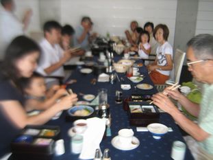 7月7日、 賑やかな朝食風景です。楽しかった集まりもあっと言う間にお別れの日になりました。 |
