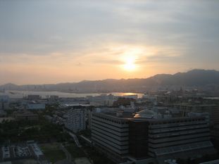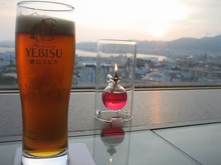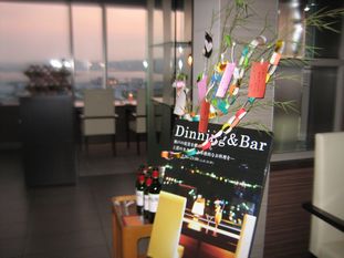 | 今日は七夕祭りです。六甲アイランドの見晴らしの良いホテルで夕日を眺めながら夕食です。 | ![]() |