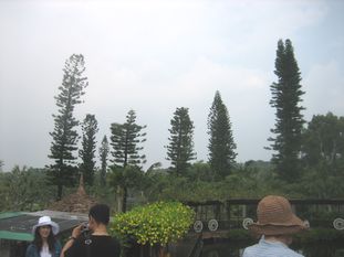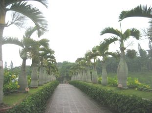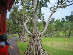 | 東南植物園はまるで南の国の楽園の感じ。かわいい電車に乗って園内を遊覧。トックリヤシしがたくさん並んでいて、素敵です。 | ![]() |