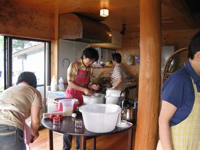 |  | 子どもも大人も分担してお部屋の丁寧掃除です。大人は台所の食器などを片付けます。 |