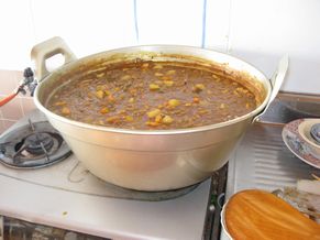 |  | 大きなお鍋にたくさんのカレーが出来ました。夏野菜が一杯入っています。 |