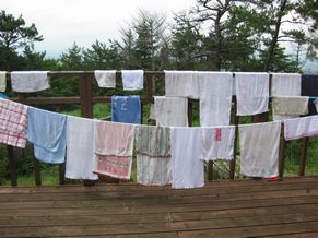 | テラスはタオルや雑巾が一杯干してあります。 |  |
