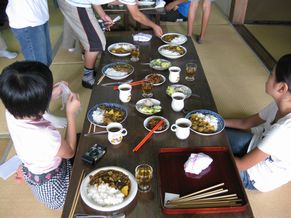|  | さあ、丸山での最後の食事になりました。 皆で「頂きます」 |