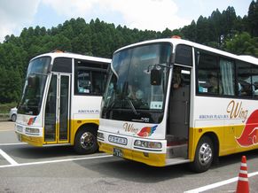 | さあ、通潤橋の放水も見ることが出来ました。いよいよお別れです。 ここで、最後のご挨拶をしました。楽しかった三日間も終わりました。どうか気をつけて元気に帰ってください。さようなら! バスの子どもたちは熊本駅で、解散です。 |  |