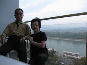 10月3日 ホテル6階の部屋のテラスからドナウ川を見下ろします。対岸は、島です。 |