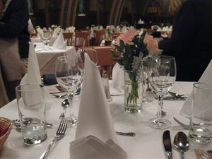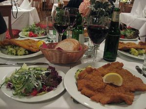 | テーブルセッティングもとても美しく、皆で喜びました。お料理は勿論、名物のウィンナーシュニッケル(ウィーン風カツレツ)おいしかったんですが、何しろ大きくて~~ | ![]() |