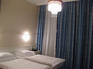 ウィーンの第一夜、素敵なレストランで皆で大満足。ホテルは近代的なホテルド・フランス、シンプルな室内が気持ちよいです。 |
