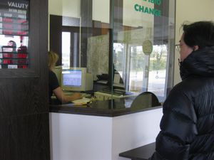 チェコの国境の辺りだそうです。ここで、少しだけお金をチェコのお金に両替します。何だか旧式のパソコンで、ノンビリと入力、両替してくれました。 |