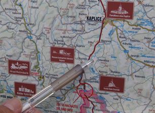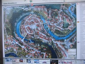 | チェスキー・クルムロフの案内板です。モルダバ川がの蛇行がよく分かります。 | ![]() |