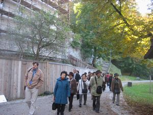 日本語の上手なチェコ人のガイドさんが案内してくれます。大阪弁が上手です。しかし、日本語は独学とか、日本へは二度旅行に行ったよ、合わせて1ヶ月。 何とも達者な日本語でした。 |