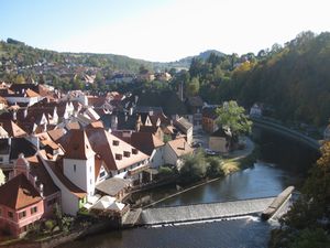 | モルダバ川と、街並みです。住民は15000人、観光客は年間100万人だとか。 | ![]() |