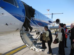 だだっ広い空港に着きました。ステップを降りて、地面を歩いて空港内へすすみます。ローカルですね。 |