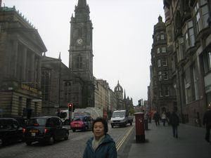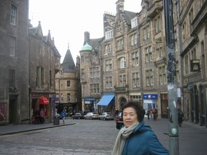 | 早速、明るいうちに、街へ出ました。オールドタウンです、街中がこんな雰囲気の古い建物です。ここが一番の観光見所のある「ロイヤル・マイルと言われる石畳の道です。 | ![]() |