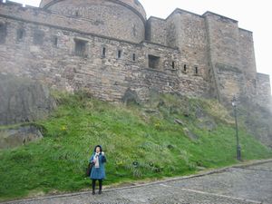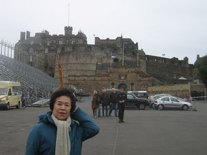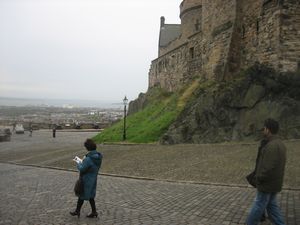 | 私たちの目的地はロイヤル・マイルの突き当たりのエジンバラ城です。 岩山の上に築かれた要塞であり、スコットランド王家の居城であり、イングランドとの攻防戦を戦い抜いてきた城。 (左の桟敷席は、夏のイベントの名残) |